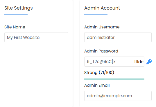 • Admin Username: Your new Open Real Estate username (for security reasons, do not use the administrator or the admin username).