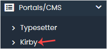 4. On the left side, locate the Portal/CMS category. Click on it and then on the Kirby link that appears.
