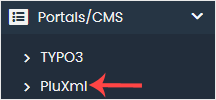 4. On the left side, locate the Portal/CMS category. Click on it and then on the PluXml link that appears.